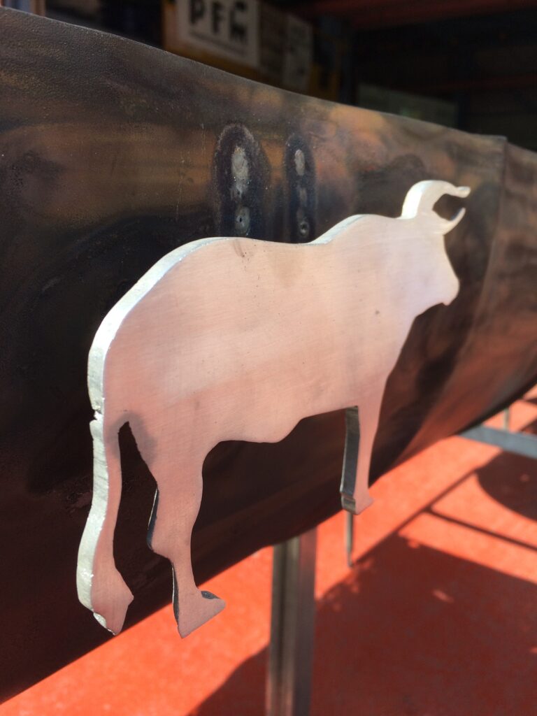 ドラム缶を半分に切ったバーベキューコンロで風通しが良いように左右に穴を開けています。その穴もちょっと可愛くニコちゃんマークになっています。