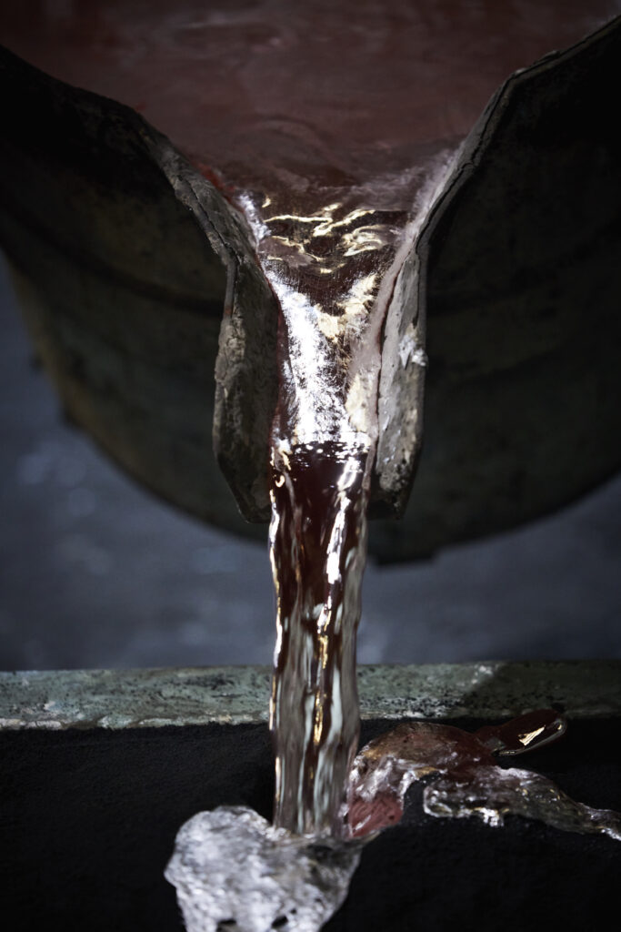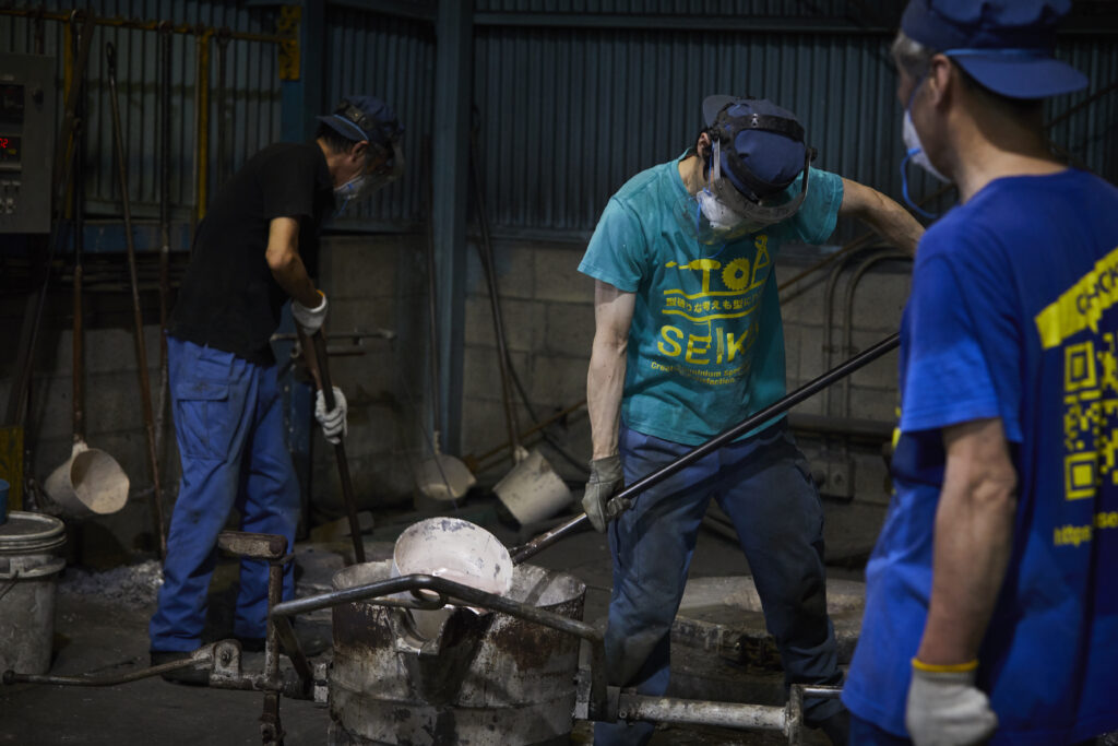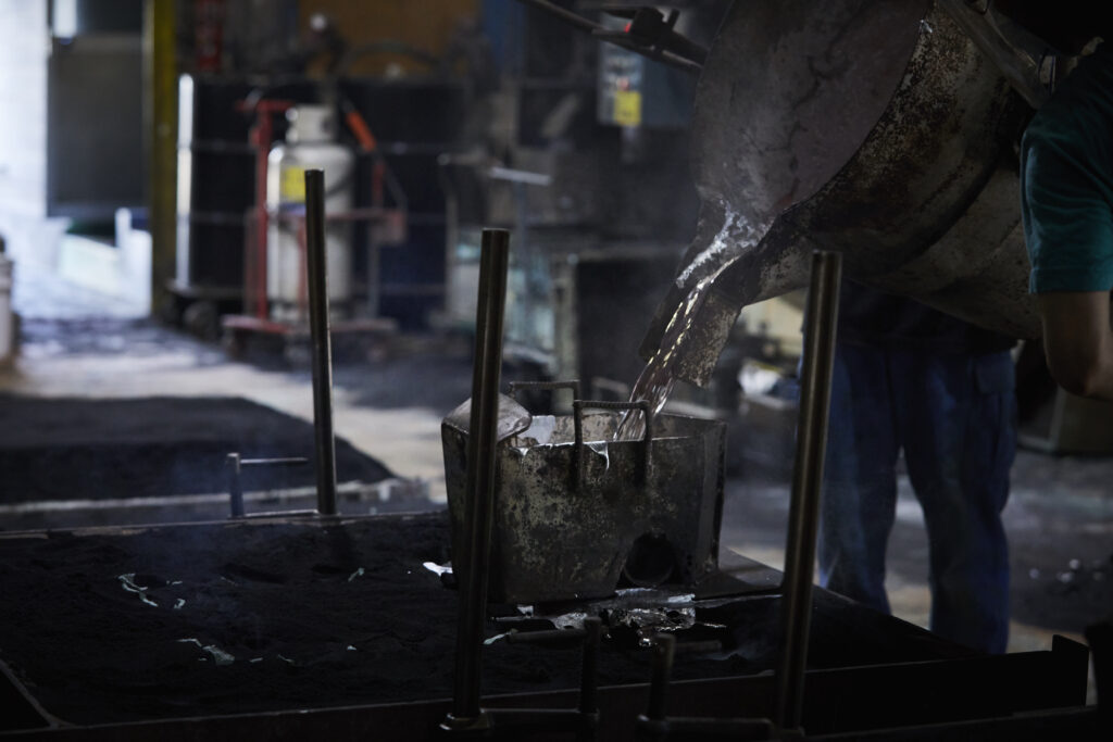 モデルに砂を固めて砂型を作り溶かしたアルミを流し込む・・・
