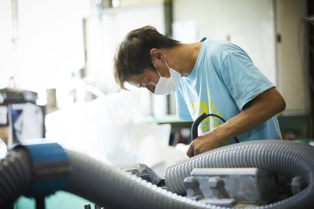 バリが取れたらベルタと呼ばれる道具で磨いていきます。