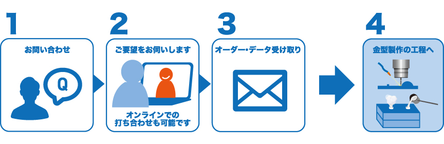 【2:お客様のご要望を聞く】にて、どの様なモノ(製品)を製作したいのか、金型製作に関するお悩みなどをヒアリングいたします。